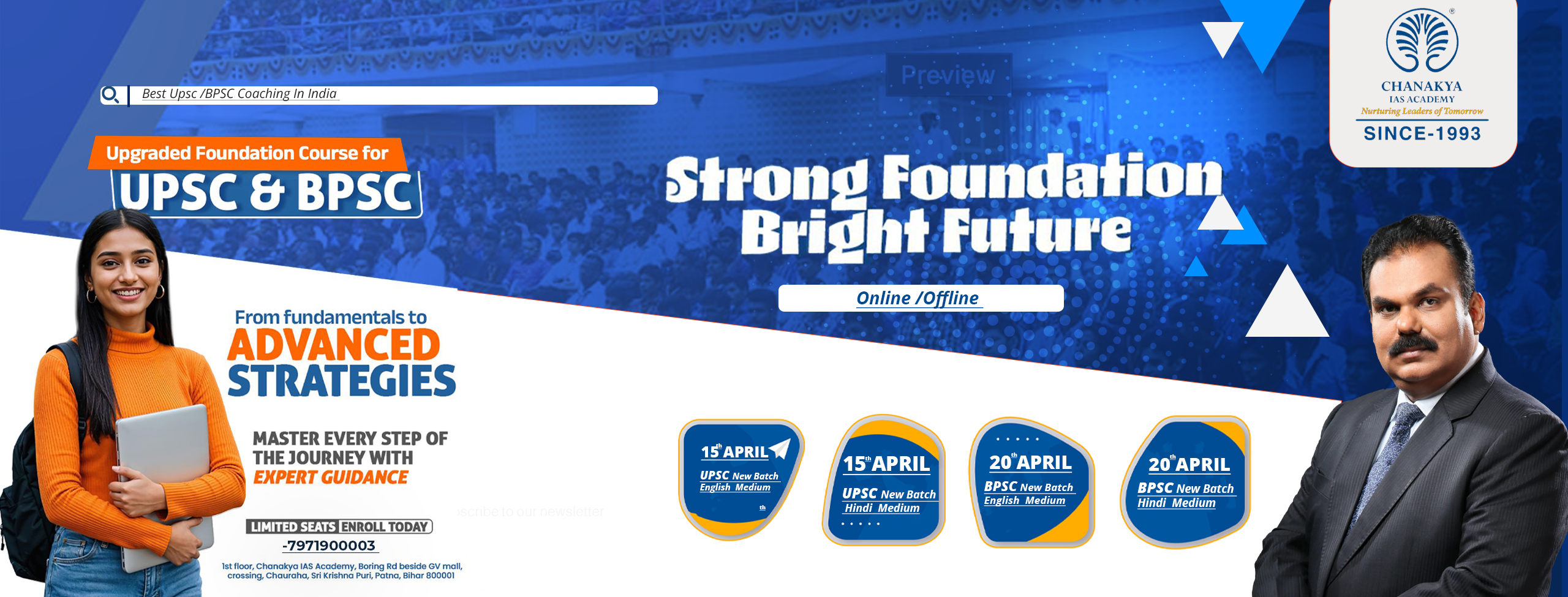 Chanakya IAS Academy, the best IAS coaching institute in BIHAR provides extensive training and offers specially formulated courses to help aspirants achieve extraordinary results. The academy offers complete solution for Prelims, Mains and Interview.